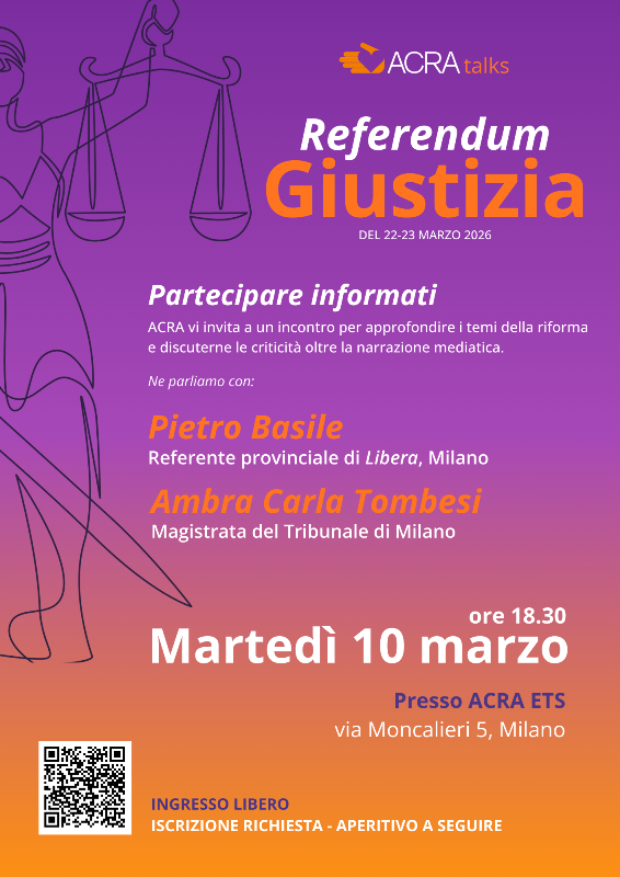 Referendum Giustizia | Martedì 10 marzo 2026, via Moncalieri 5, dalle ore 18.30. Il primo incontro di ACRA Talks.